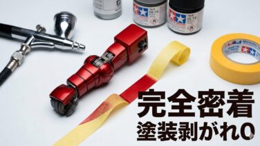 マスキングテープと一緒に塗装が剥がれる絶望を味わったモデラー必見!洗剤での脱脂、サフ・プライマーの使い分けから、ホコリを巻き込まない「手のひら」を使ったマスキング粘着力コントロールまで、塗膜をガッチリ食いつかせる完全防備の塗装術を解説します。
