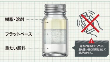 なぜ「塗料を混ぜる」ことがそこまで重要なのか?(成分分離の罠)プラモデルを塗装するとき、瓶の蓋を開けて「適当に棒でぐるぐる回すだけ」で塗装していませんか?思った通りの発色が出ない。パーツによってツヤ加減が変わる。塗装後に塗膜がひび割れた。こ...