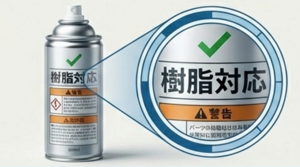 注意点は「樹脂・プラスチック・ゴム対応」等と明記されているものを選ぶことと、パーツに直接ブシューっと吹いてしまうのはNGということ。これは割れ対策のためです。